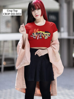 Powerpuff Girls Cartoon Graphic Print with Round Neck Crop Top – CROP-033