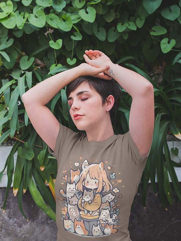 Cute Kitty Round Neck Female TEE | WTEE-297